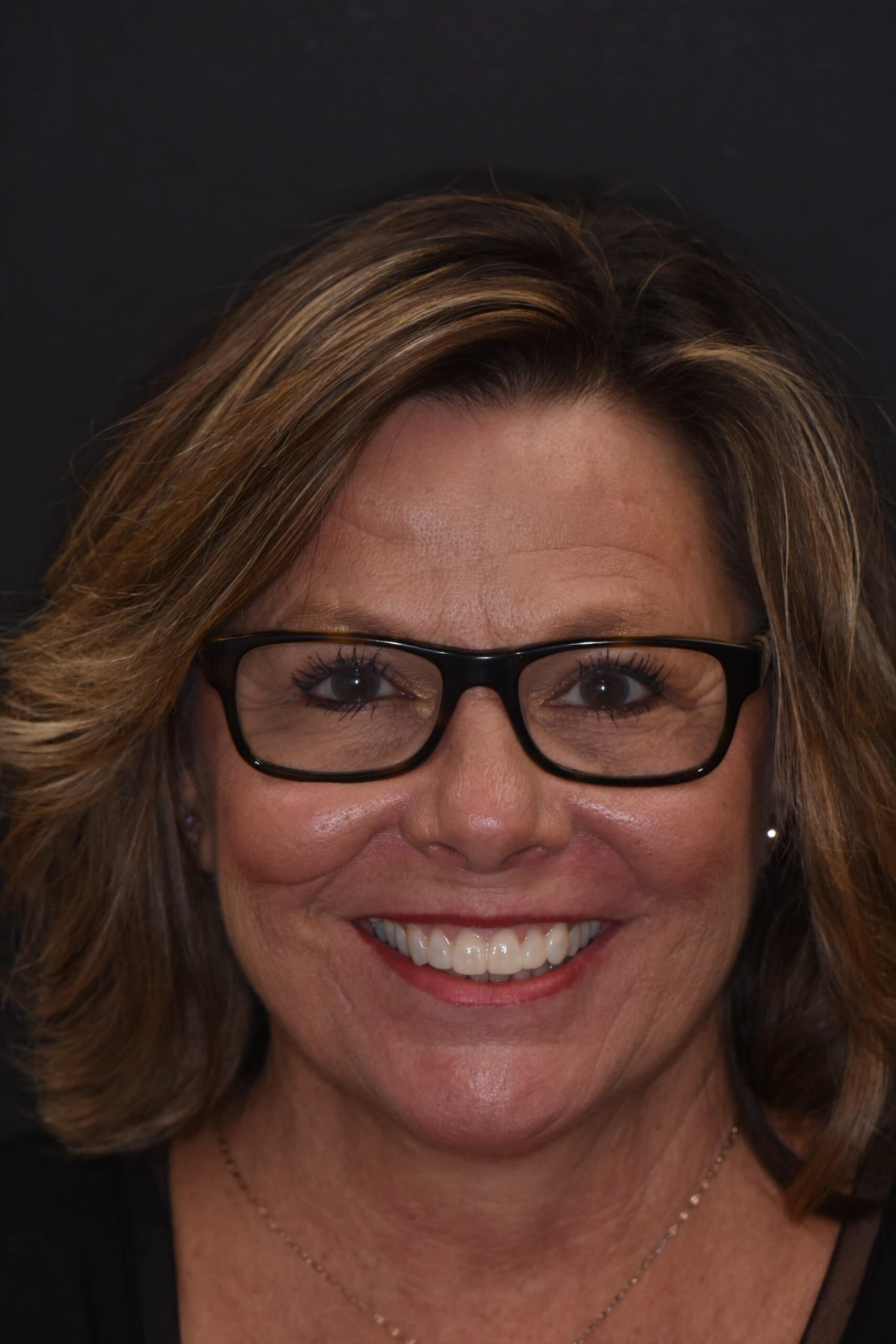 The 3-D design is tried on in the mouth using a temporary material. This allows Pam to see what the new smile will look like as well as the ability to make any changes to the initial design. For Pam, this is exactly what she is looking for. She loved the improvement of the shape and size and plans to make the final veneers brighter than what is pictured. In her case, we used Invisalign to improve the alignment of her teeth and make the reshaping of her teeth as minimal as possible.